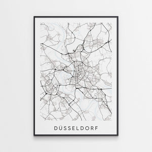 Dusseldorf map print in our minimal mono style. If Dusseldorf holds a special place in your heart, why not have a constant reminder of it on your wall?
