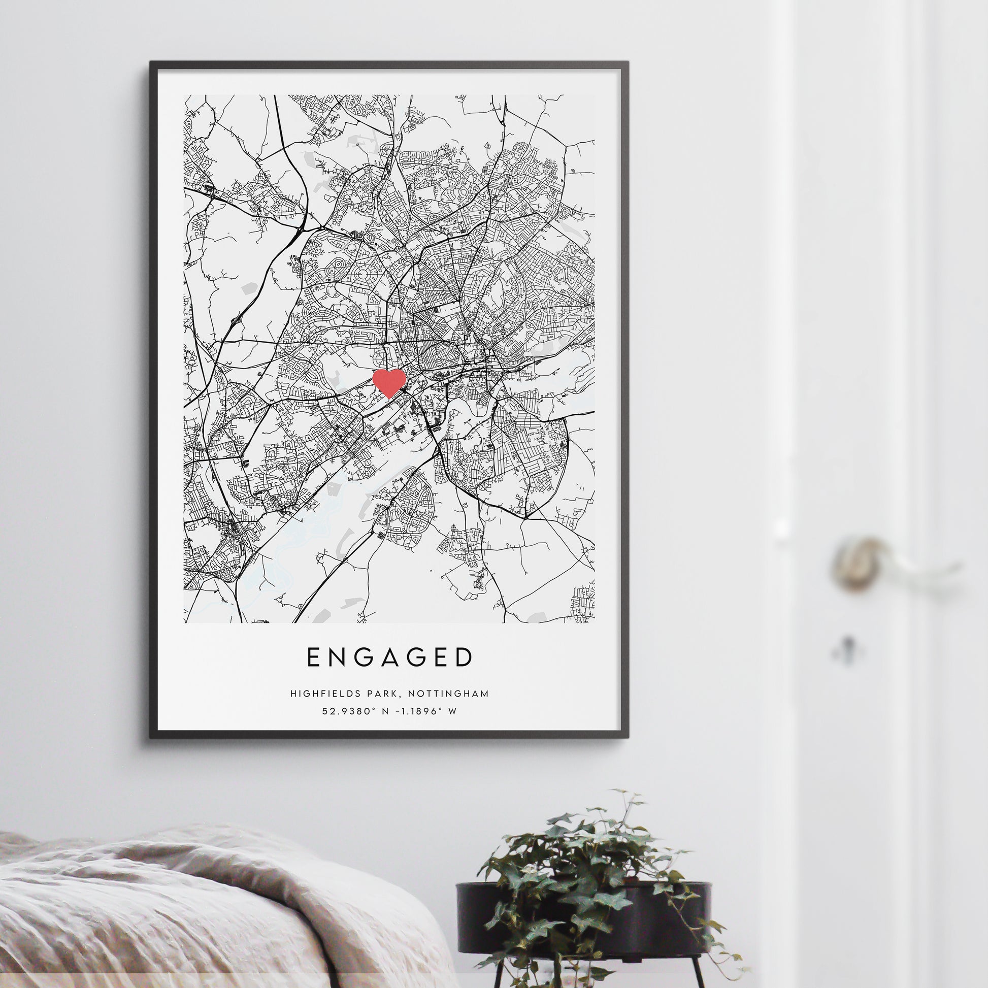 This beautiful map print is a unique way to capture memories of the special day. Featuring a custom map of the location where the couple got engaged, this print is a wonderful keepsake that can be treasured for years to come. Perfect as an anniversary, wedding or engagement gift.