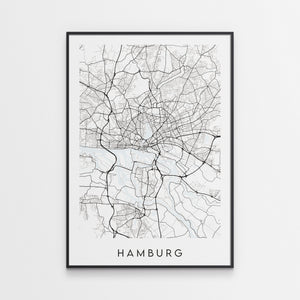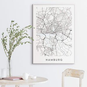 Hamburg map print in our minimal mono style. If Hamburg holds a special place in your heart, why not have a constant reminder of it on your wall?
