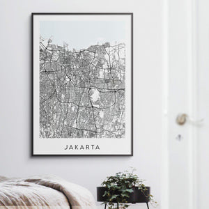 Jakarta map print in our minimal mono style. If Jakarta holds a special place in your heart, why not have a constant reminder of it on your wall?