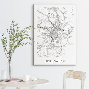 Jerusalem map print in our minimal mono style. If Jerusalem holds a special place in your heart, why not have a constant reminder of it on your wall?