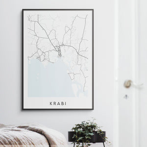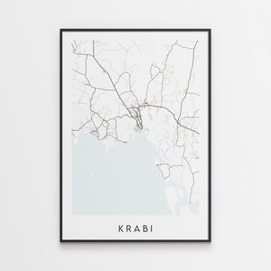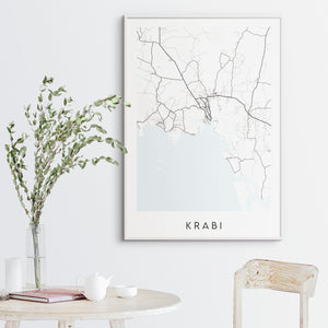 Krabi map print in our minimal mono style. If Krabi holds a special place in your heart, why not have a constant reminder of it on your wall?