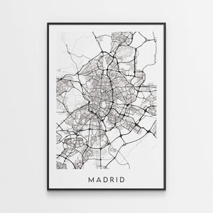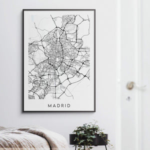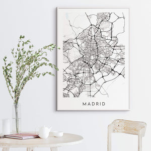 Madrid map print in our minimal mono style. If Madrid holds a special place in your heart, why not have a constant reminder of it on your wall?