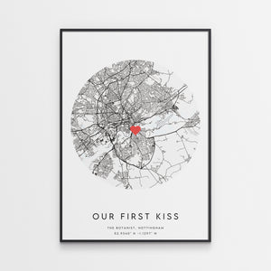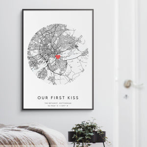 Do you remember where you had your first kiss with your loved one? If you do, we have the perfect gift for you with this personalised map print. Your loved one will feel super special with this unique gift.