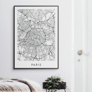 Paris map print in our minimal mono style. If Paris holds a special place in your heart, why not have a constant reminder of it on your wall?